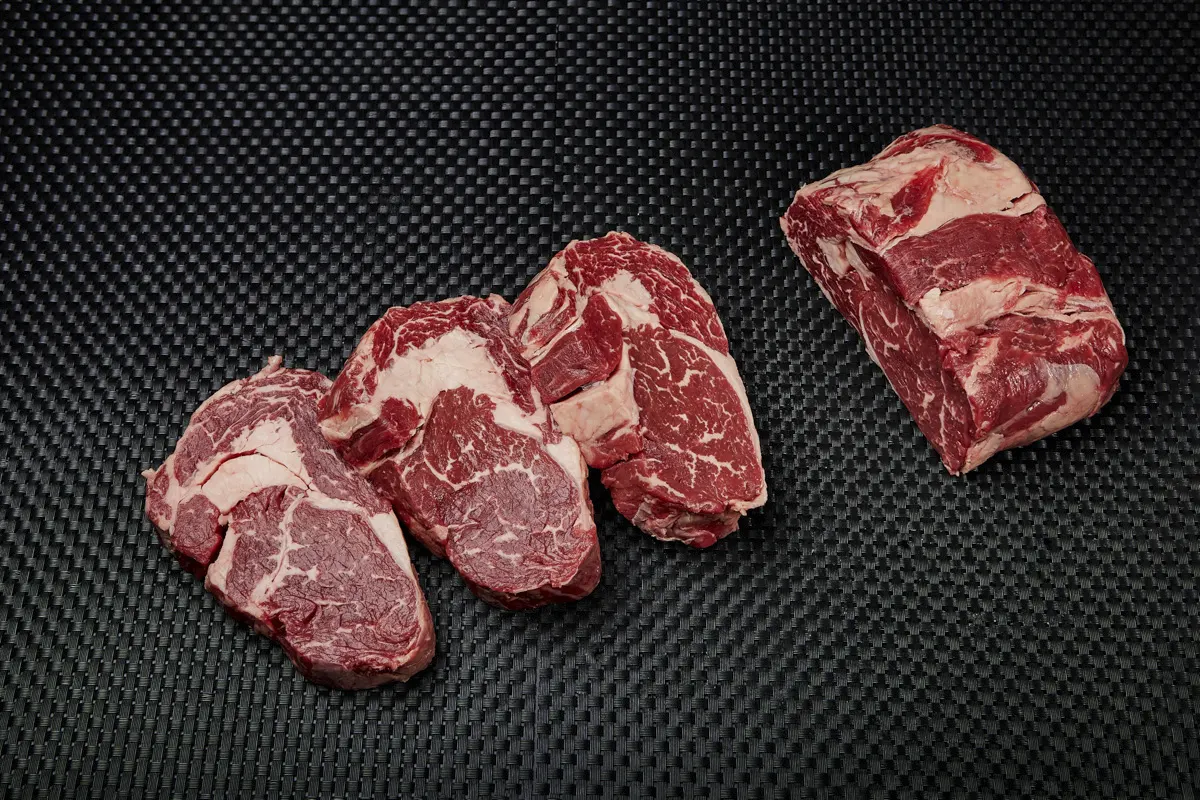 Το περιζήτητο μάτι* της σπαλομπριζόλας, 6ος-12ος θωρακικός, αυστηρά. Μάρμαρο ερυθροπόρφυρο Μάνης στην όψη, βούτυρο στα δάχτυλα, βελούδο στο στόμα, συναρπαστική, μακριά, μελάτη επίγευση.